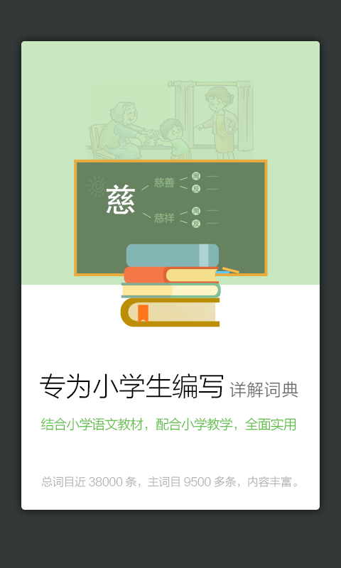 【軟件簡(jiǎn)介】專門為小學(xué)生編寫的同義詞近義詞反義詞詳解詞典。《小學(xué)生同義詞近義詞反義詞詳解詞典(四色插圖本)》2011年8月第1版第1次印刷手機(jī)版同步發(fā)行。內(nèi)容緊密結(jié)合小學(xué)語(yǔ)文教材,配合小學(xué)教學(xué)。同義詞近義詞、反義詞按義項(xiàng)選取并釋義、舉例,明細(xì)精確。總詞目近38000條,主詞目9500多條,全面實(shí)用。同義詞近義詞近25000條,反義詞13000多條,豐富恰當(dāng)。注意400多條、辨析450組,準(zhǔn)確到位,簡(jiǎn)約明晰。插圖200多幅,直觀對(duì)比,幫助理解詞義。海詞詞典(中國(guó)第一個(gè)互聯(lián)網(wǎng)詞典Dict.cn)攜手商務(wù)印書館國(guó)際有限公司官方權(quán)威正版發(fā)布,具有攝像頭查詞、通知欄快捷查詞等便捷查詞功能,還有清晰發(fā)音、生詞收藏和復(fù)習(xí)背誦等輔助學(xué)習(xí)功能。選擇正版詞典,學(xué)習(xí)更有保障!(版權(quán)所有,盜版必究)